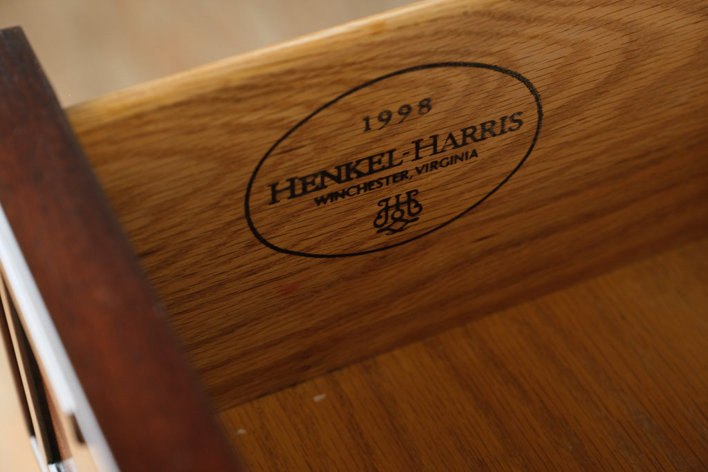 This buffet brings an elevated presence to dining rooms, entryways, or formal living areas, offering both substantial storage and exceptional visual warmth. The combination of refined mahogany grain, Regency-inspired detailing, and Henkel Harris’s celebrated craftsmanship makes it a standout for traditional interiors, classic homes, or collectors seeking investment-grade American furniture. Its storage versatility suits fine china, linens, barware, or curated display pieces with equal grace.