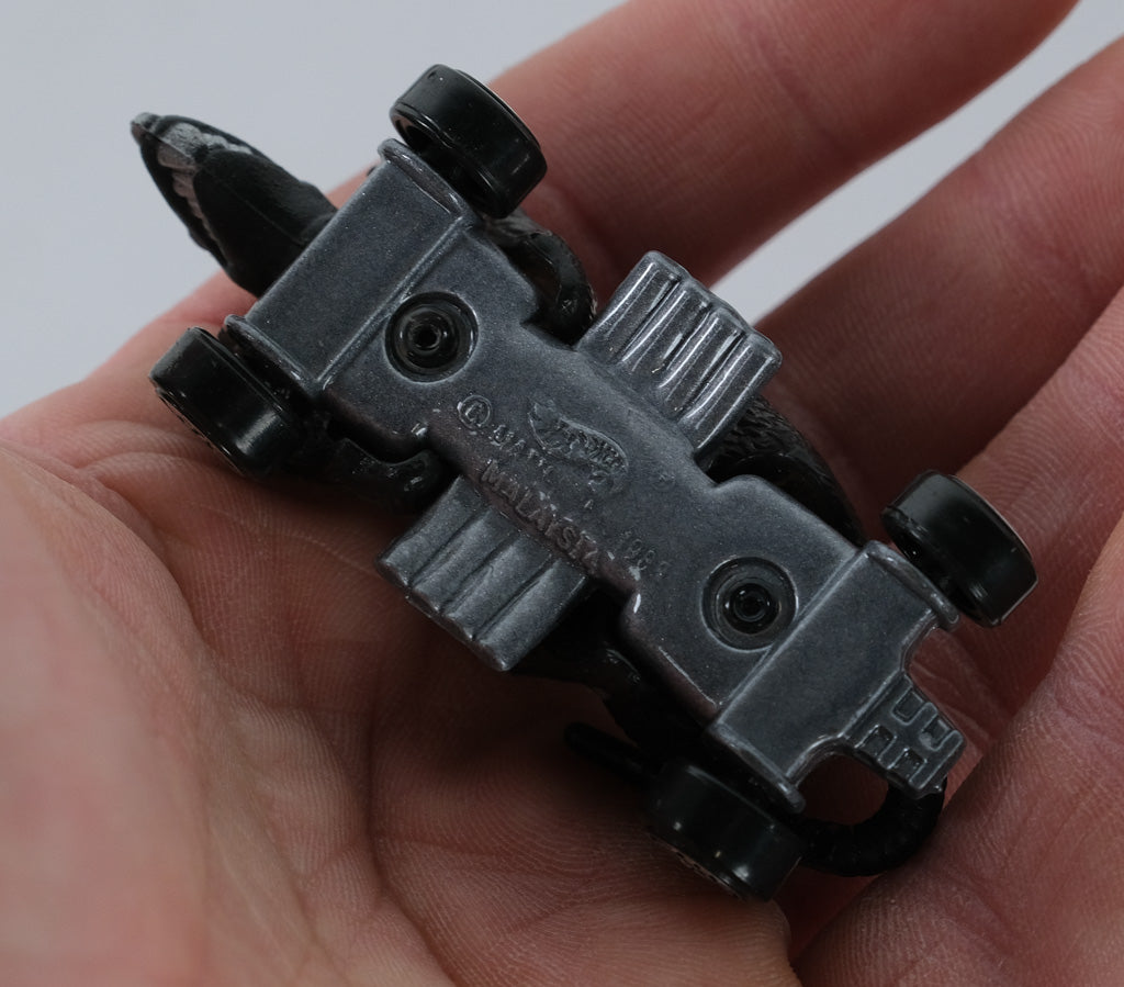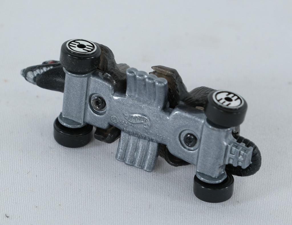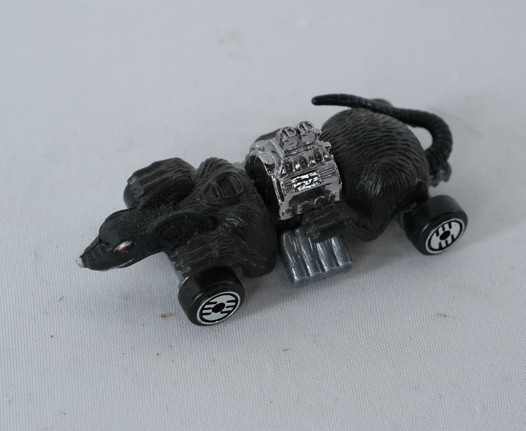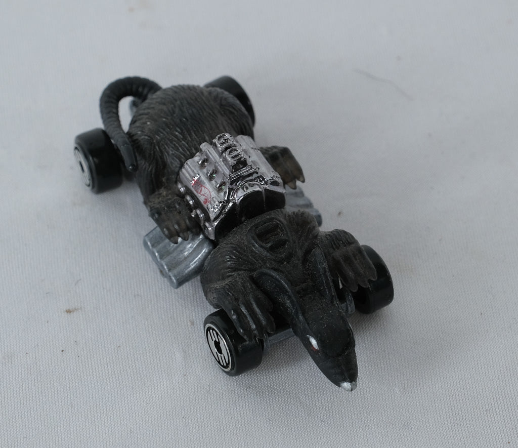 This 1994 Hot Wheels Ratmobile is a standout from the classic fantasy line that captures Hot Wheels’ wild imagination. Featuring a sculpted black rat body with a gleaming chrome V8 engine and oversized exhaust pipes, this model fuses muscle-car styling with creature-inspired creativity. Its chrome-detailed base and Hot Wheels logo wheels complete the unmistakably 90s look.