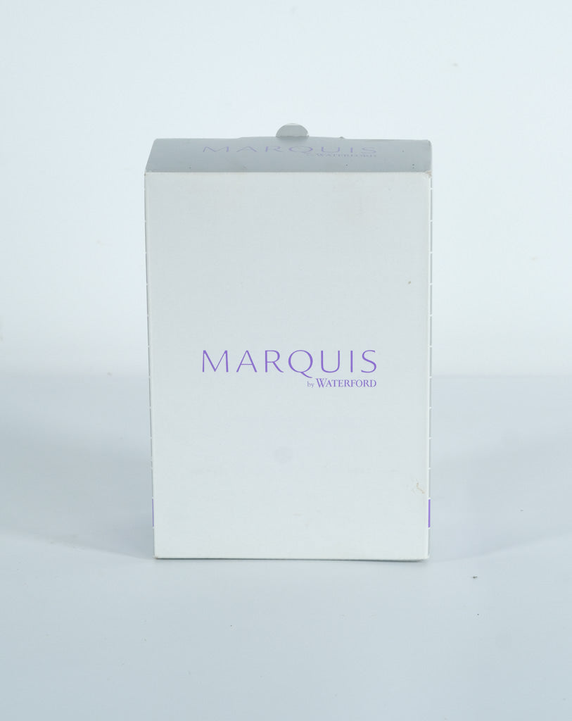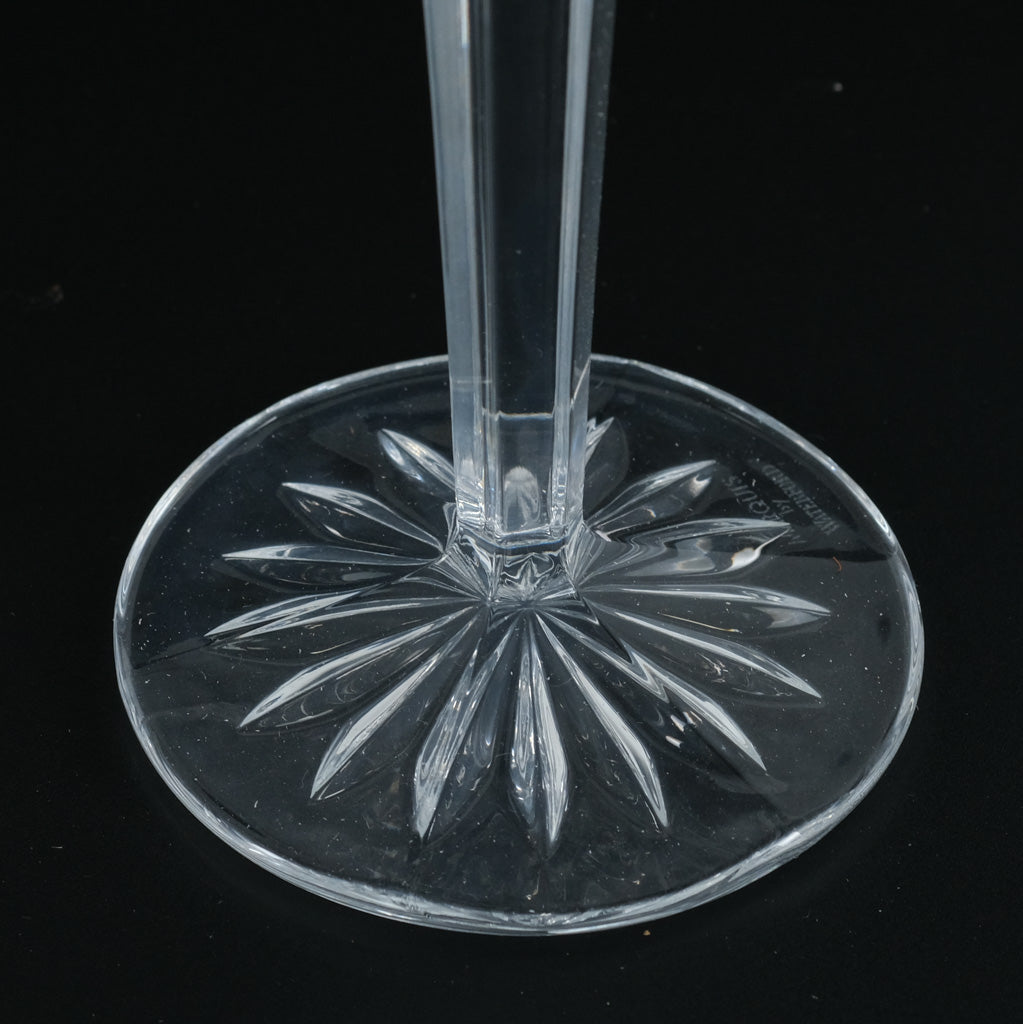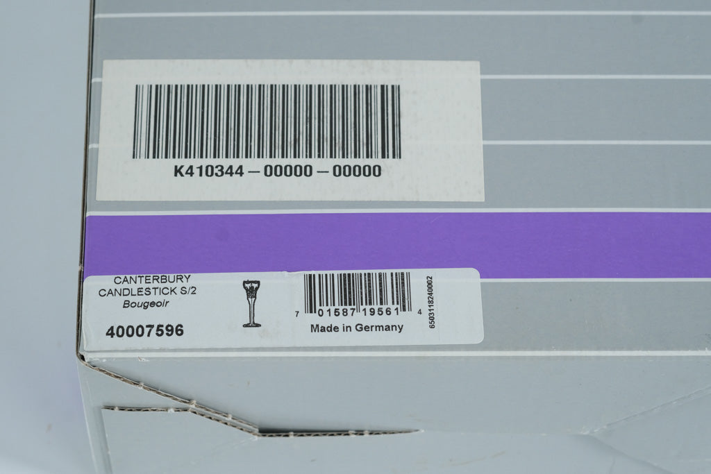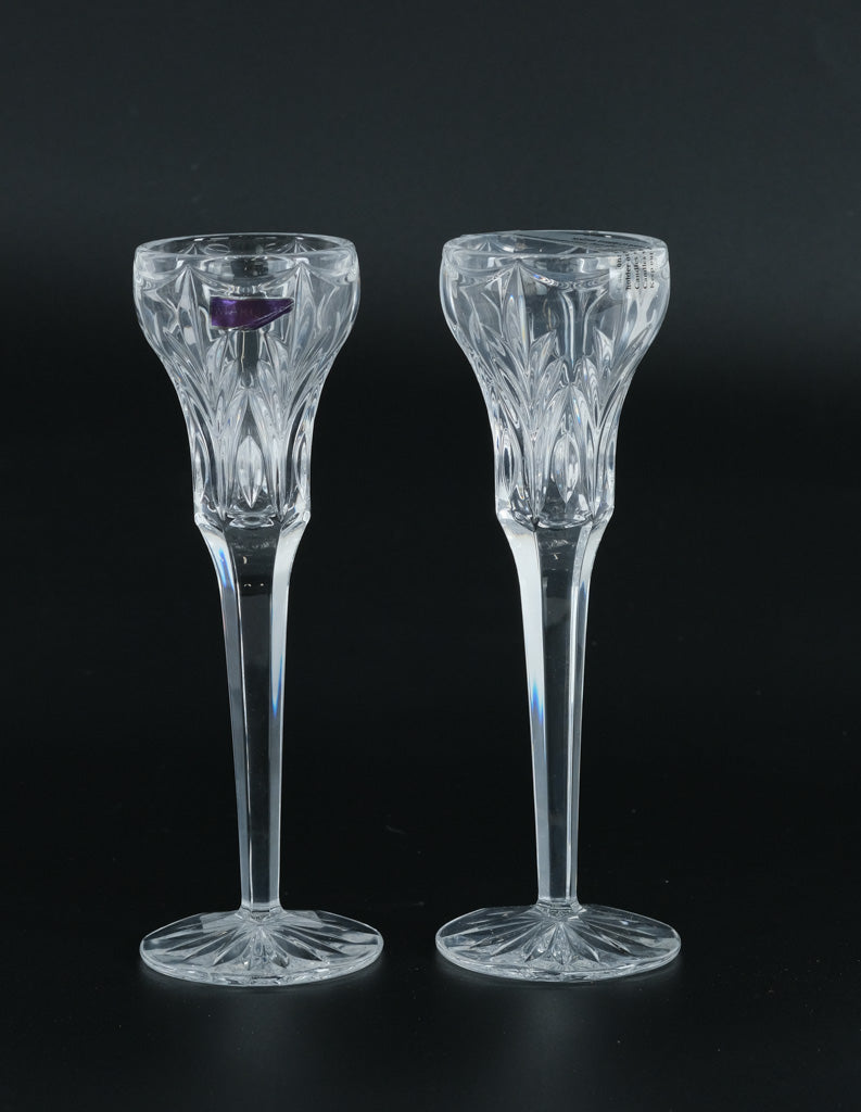 This elegant pair of Marquis by Waterford “Canterbury” crystal candlesticks brings refined sparkle and timeless style to any table or mantel. Crafted in Germany, each piece features beautifully faceted cuts that catch and reflect the light with classic Waterford brilliance. Sleek, elongated stems flow into starburst-cut bases, creating a silhouette that feels both traditional and contemporary. Both candlesticks appear unused and come with their original box—ideal for gifting, collecting, or elevating your home décor.
