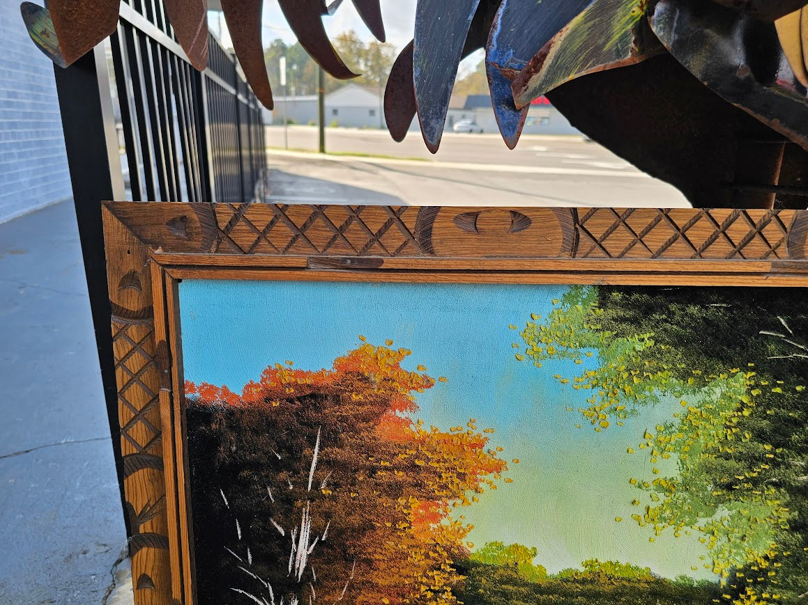 The artwork is framed in a vintage wood frame that shows authentic wear, adding to its character and charm. At an impressive 47" × 28", it stands out beautifully as a statement wall piece for homes, studios, or collectors of traditional Asian art.
