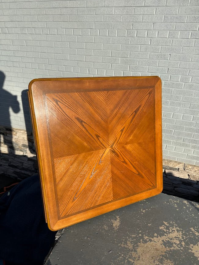 Ideal for dining, card games, puzzles, or family gatherings, this set combines the timeless durability of oak with the comfort of mobile cushioned seating. The generous square tabletop provides plenty of surface area without overwhelming a room, making it a versatile and functional centerpiece for casual living.