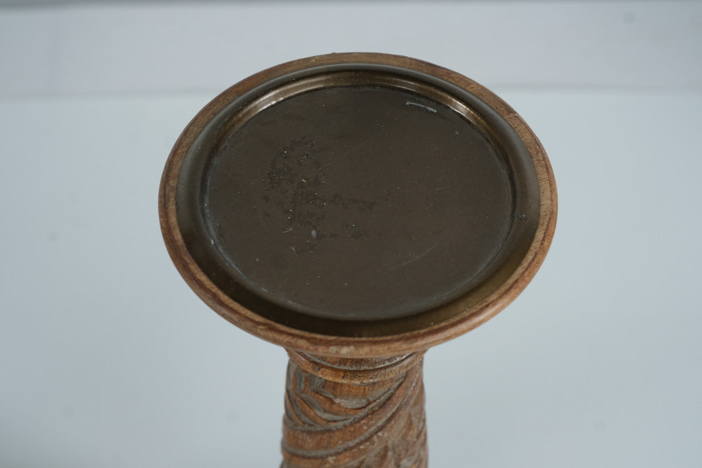 Add natural warmth and artisanal texture to your space with this pair of hand-carved wooden pillar candle holders from Pier 1 Imports. Crafted from solid wood with a beautiful leaf-and-vine spiral design, these tall holders bring rustic elegance to mantles, dining tables, or sideboards.