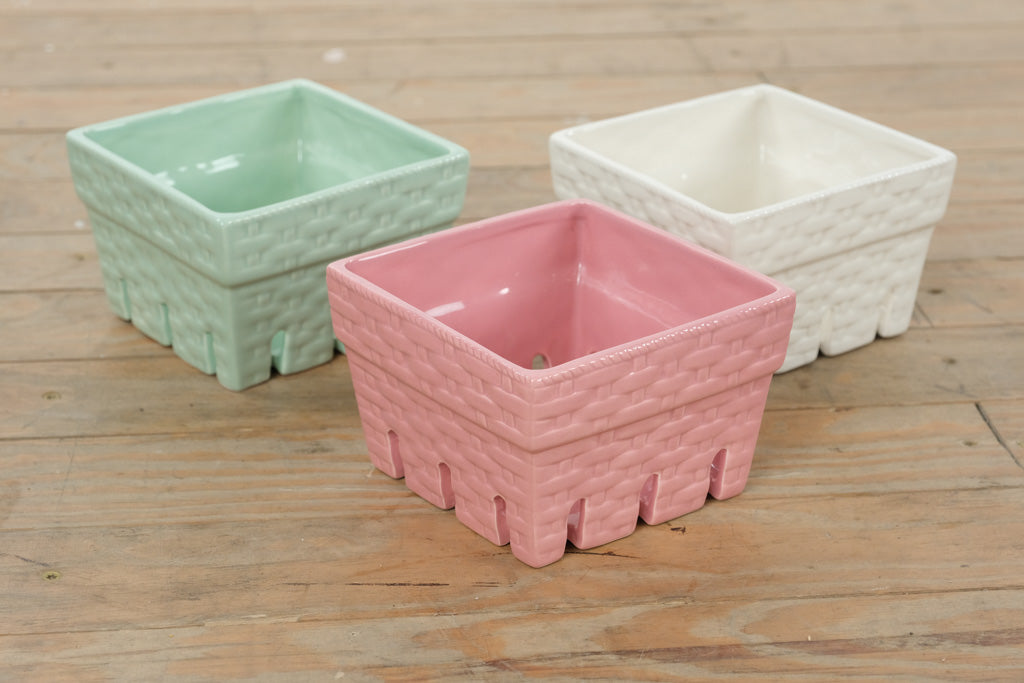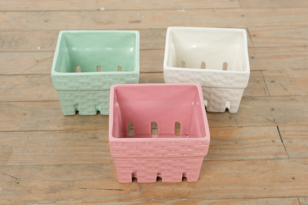 π Add a pop of farmhouse charm to your kitchen with this set of three Pier 1 Imports ceramic berry baskets. Inspired by traditional fruit cartons, these dolomite pieces in soft pastel hues are perfect for washing, serving, or displaying fresh produce.