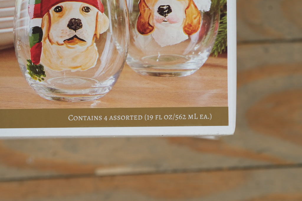 Celebrate the season with this charming Pier 1 Imports Holiday Dog Stemless Glass Set, featuring four assorted designs of festive pups in winter scarves, hats, and bows. Each 19-ounce glass is beautifully detailed with cheerful hand-painted dog portraits, bringing warmth and whimsy to any holiday gathering. Perfect for wine, cocktails, or festive mocktails, this boxed set makes a delightful gift for dog lovers or a merry addition to your own holiday entertaining collection.