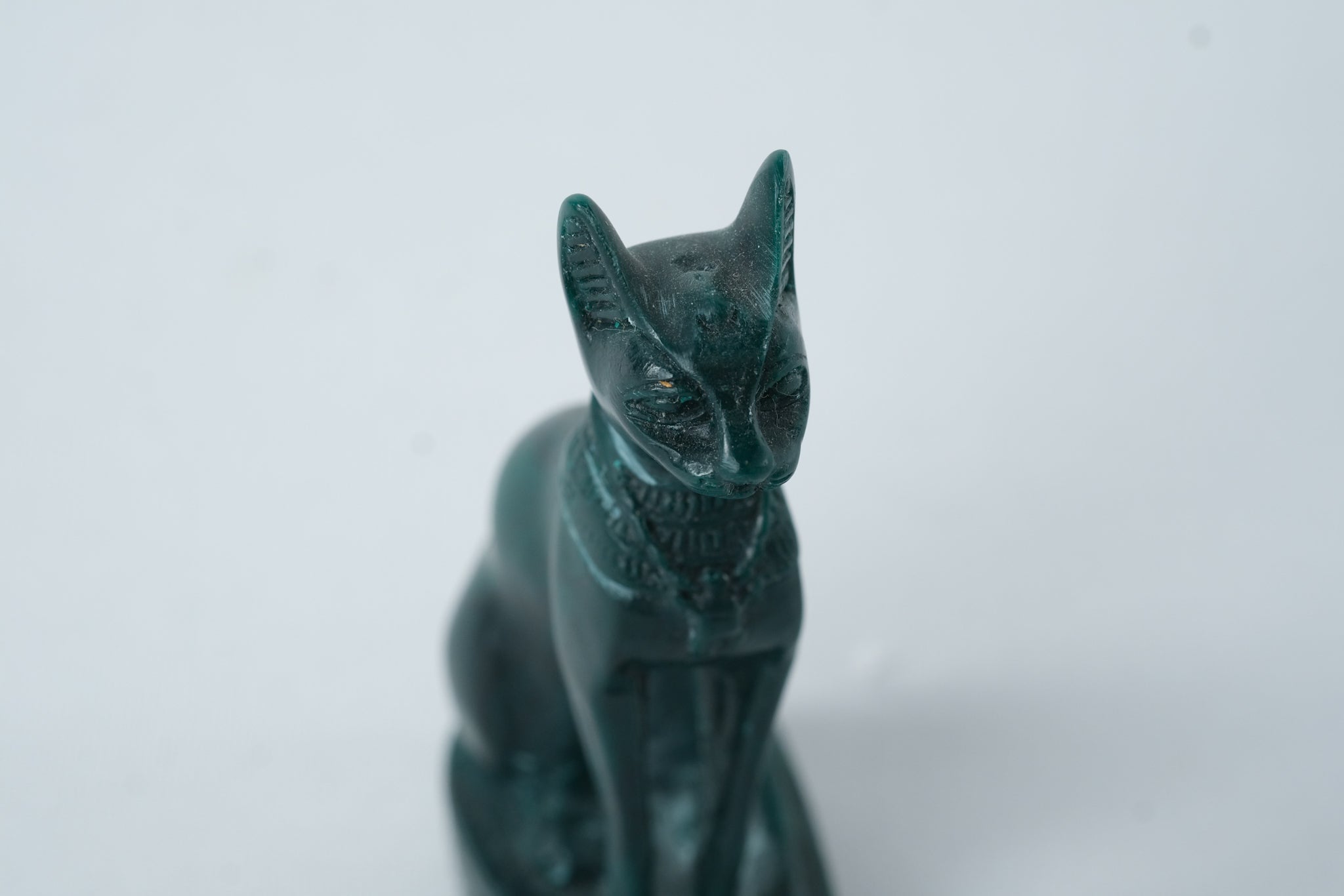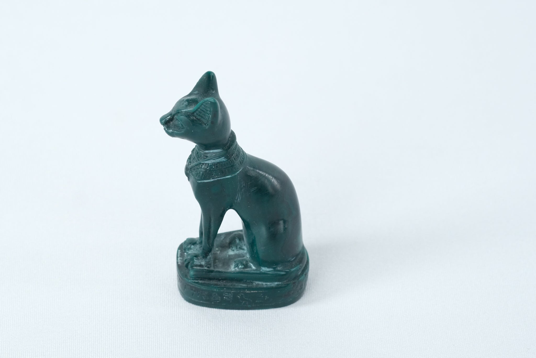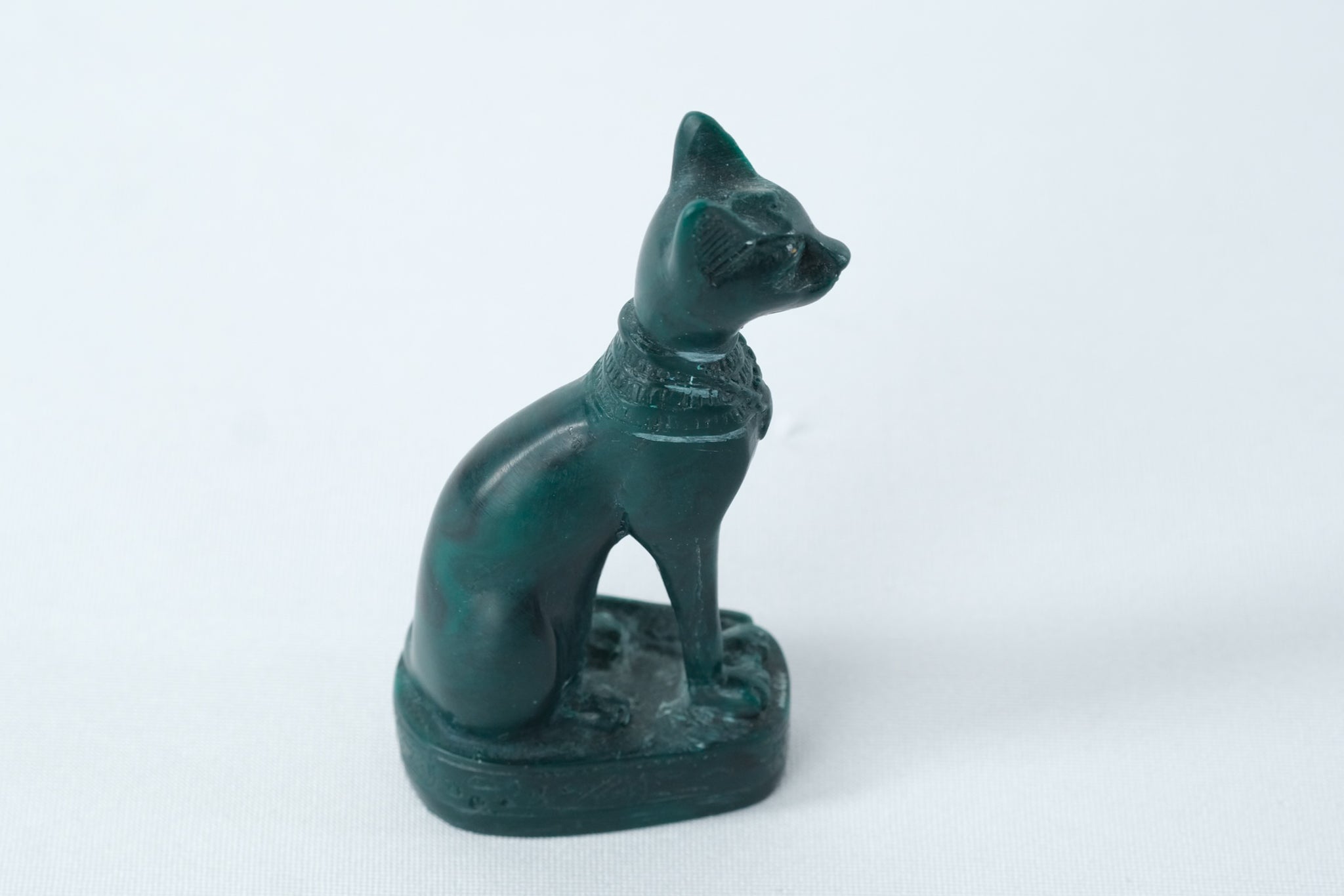 Miniature Egyptian Bastet Cat Statue – Green Stone-Style Figurine, 3"