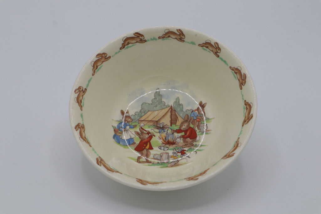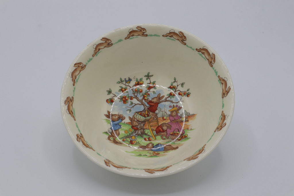 🐇 Each bowl is bordered with a ring of leaping brown bunnies, a signature Bunnykins touch.