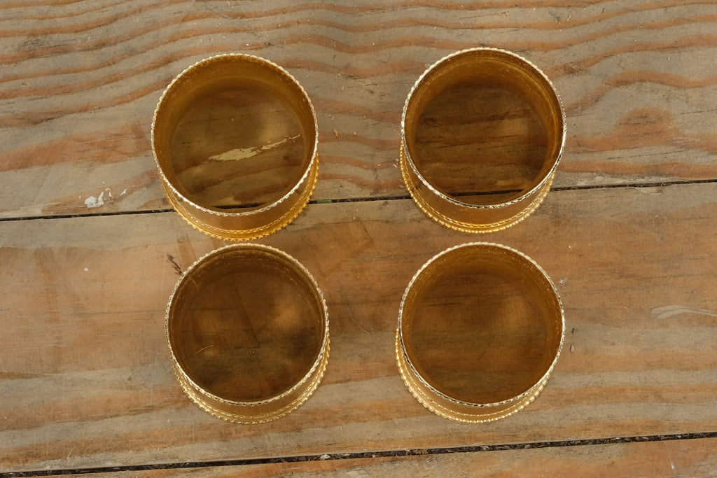 Set of 4 Gold-Tone Hammered Metal Napkin Rings – Beaded Rim Design