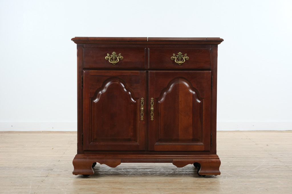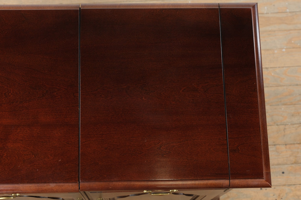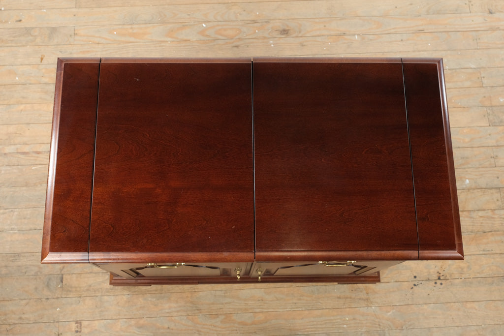 A beautiful balance of function and traditional design, this Stanley Furniture flip-top server offers timeless craftsmanship in a compact, elegant form. The warm cherry finish highlights the fine wood grain, while the paneled doors and brass hardware lend classic appeal. Its expanding top provides versatile surface space—perfect for serving, entertaining, or everyday use in refined interiors.
