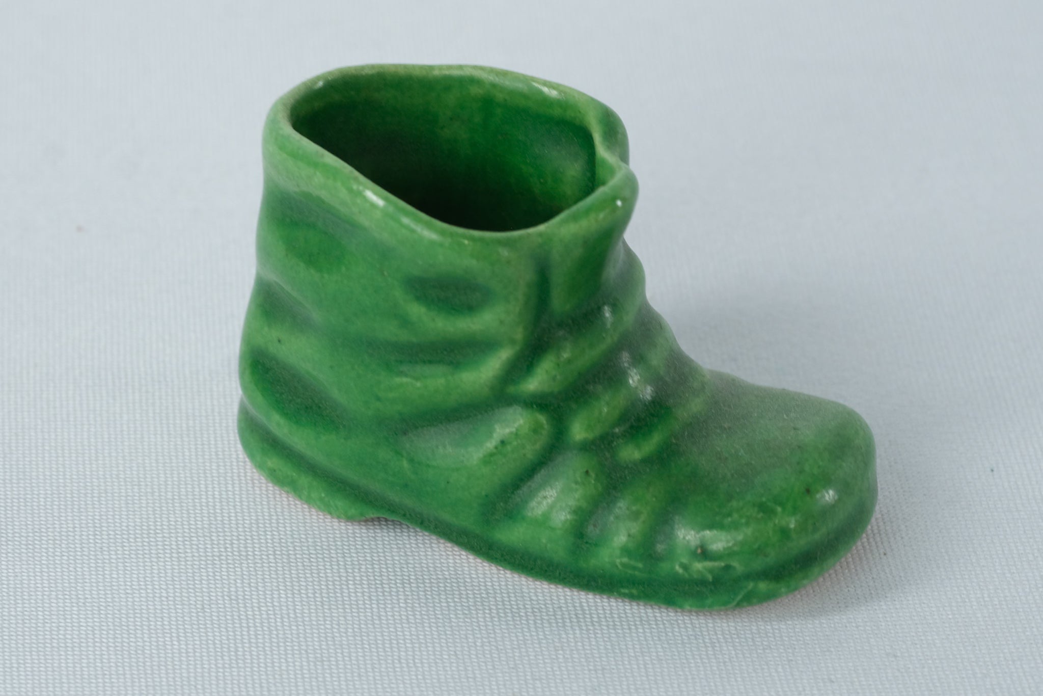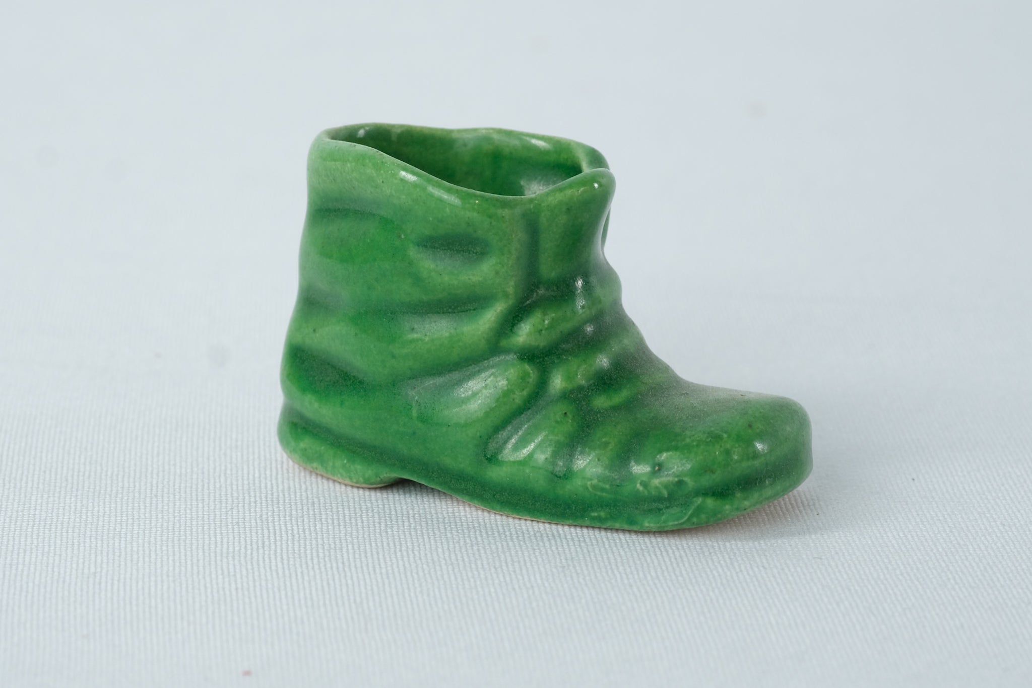 Vintage Green Glazed Ceramic Boot Figurine – Miniature Pottery Shoe Planter – 1.5" Tall