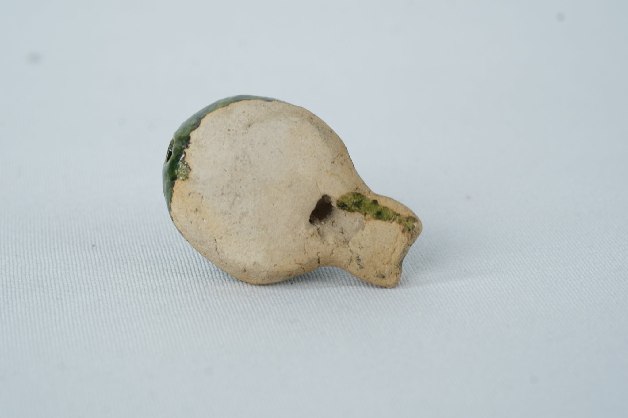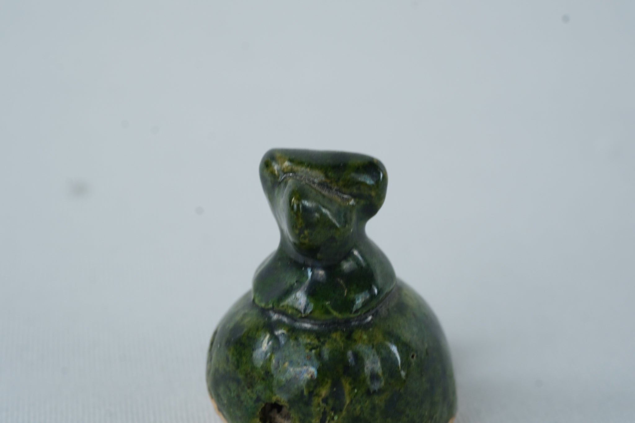• Load image into Gallery viewer, Vintage Miniature Green Glazed Clay Figurine – Rustic Folk Art Accent – 1.25" Tall