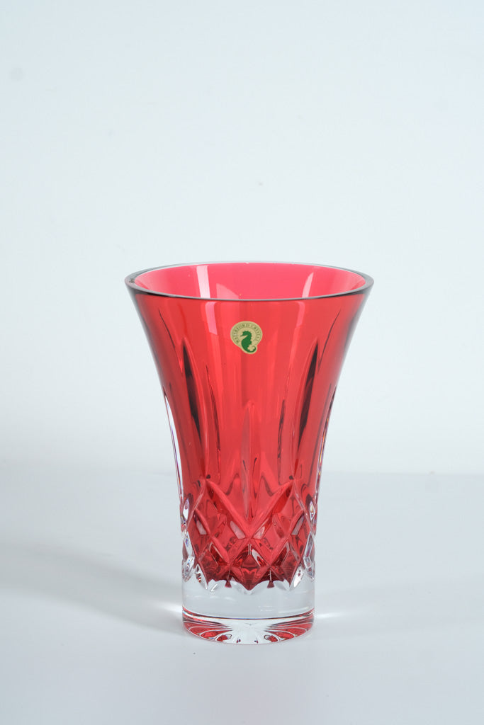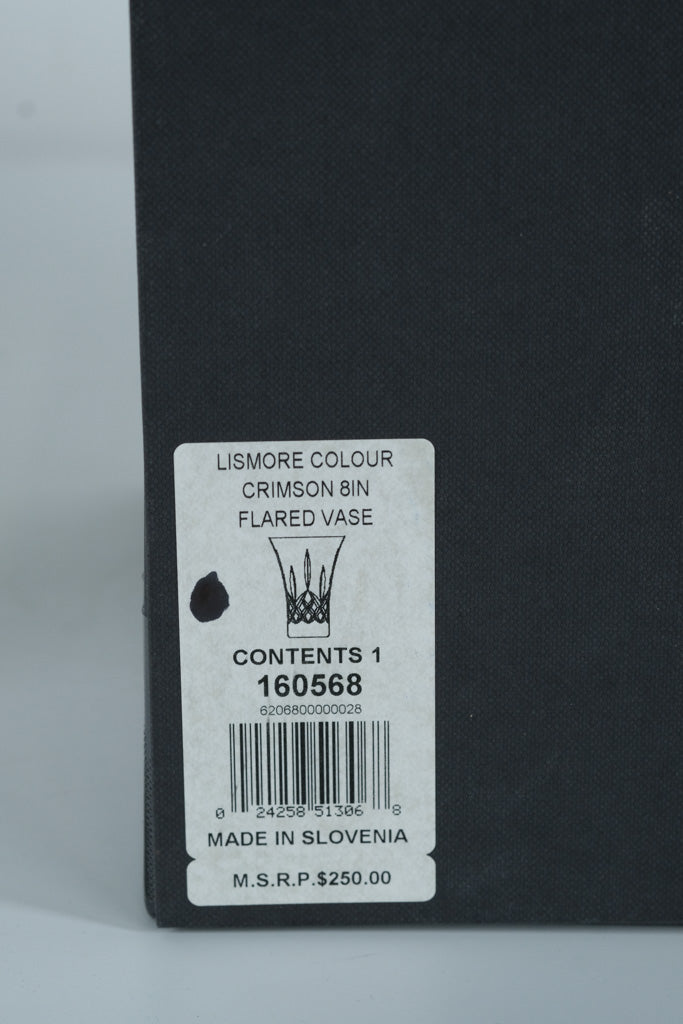 This striking Waterford Crystal Lismore Colour vase in rich crimson brings elegance, craftsmanship, and brilliant sparkle to any space. Expertly crafted in Slovenia, its flared silhouette and deep ruby tone create a dramatic display whether styled with flowers or showcased on its own. The iconic Lismore diamond and wedge cuts catch the light beautifully, making this piece a timeless addition to any crystal collection. Includes the original box for gifting or safe storage.