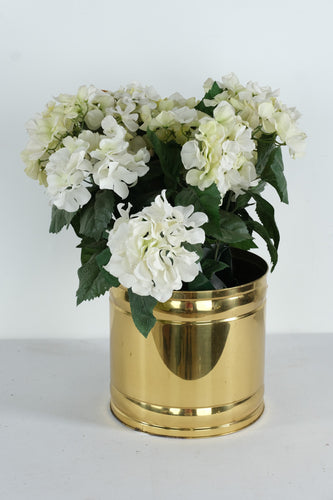 Artificial White Hydrangea Arrangement in Polished Brass Planter – 20” Tall Floral Display (10” x 10”)