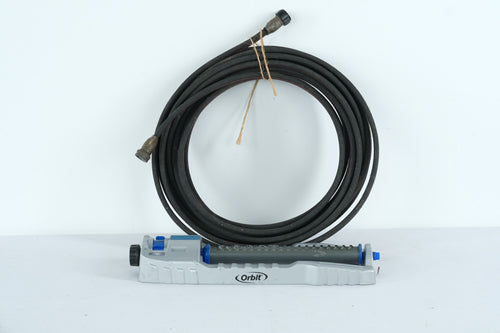 Orbit Adjustable Oscillating Lawn Sprinkler with Rubber Garden Hose – Gray & Blue