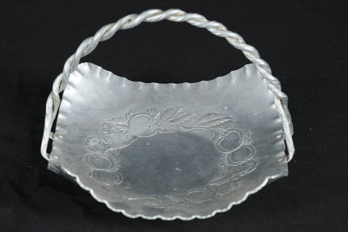 Vintage Forged Aluminum Basket with Handle – Floral Embossed Serving Dish, 10" x 9" x 7"