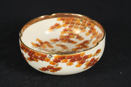 Vintage Japanese Satsuma-Style Hand Painted Bowl with Maple Leaves, Birds & Gold Trim – 5"