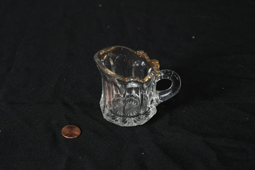 Vintage Pressed Glass Mini Creamer with Gold Rim – Starburst Base, 2.75"