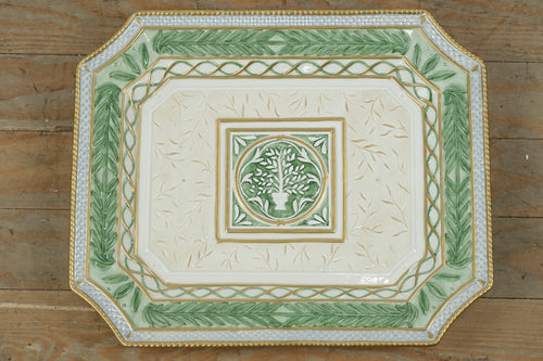Fitz & Floyd Classics Gregorian Collection 16β Handcrafted Ceramic Serving Platter β Embossed Tree & Leaf Motif, Gold & Green Trim