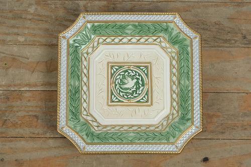 Fitz & Floyd Classics Gregorian Collection 9.5β Square βCanopeβ Plate β Handcrafted Ceramic with Dove Motif & Gold Trim