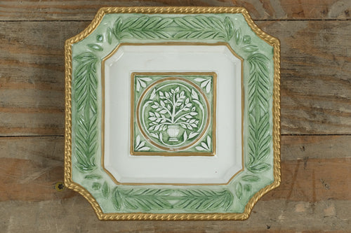 Fitz & Floyd Classics Gregorian Collection 5.6β Square Accent Plate β Handcrafted Ceramic with Embossed Tree Motif & Gold Trim