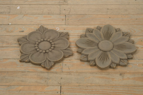 Pair of Decorative Carved Wood Wall Plaques β Rustic Floral Medallion Set