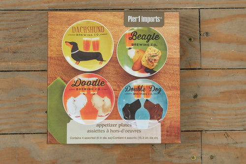 Pier 1 Imports βDog Brewing Co.β Appetizer Plate Set β 4 Assorted Dog Designs (6β Diameter)