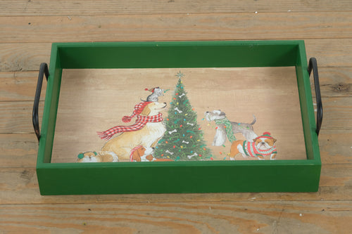Pier 1 Park Avenue Puppies Christmas Serving Tray β Festive Wooden Holiday DΓ©cor, 18.5β Wide