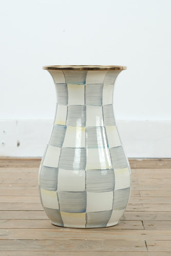 MacKenzie-Childs Sterling Check Tall Vase β Handcrafted Ceramic Decor with Platinum Rim