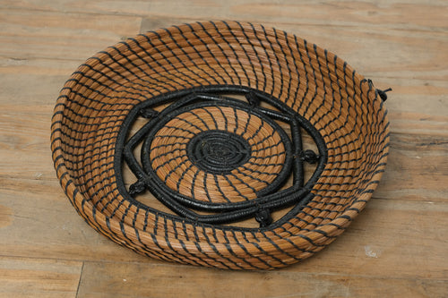 Pine Away Baskets Handcrafted Pine Needle Bowl β Black Coil Accent Design