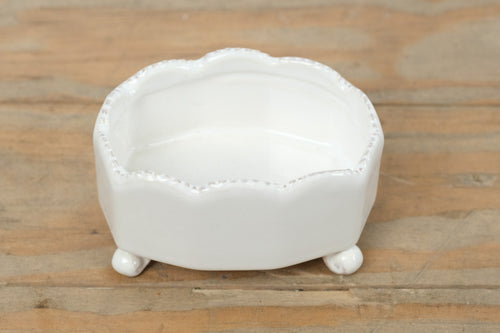 White Ceramic Trinket Dish with Scalloped Rim β Footed Vanity Bowl