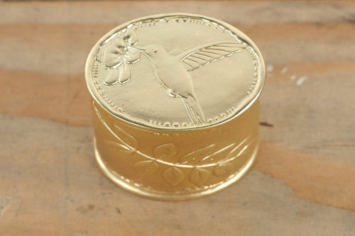 Gold Embossed Metal Trinket Box β Hummingbird & Flower Design