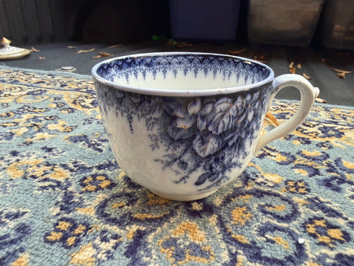 Antique Keller & Guérin Lunéville Oversized Cup – Flow Blue Floral Motif, French Porcelain c.1890s