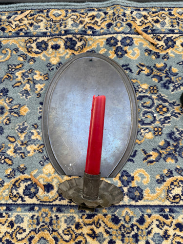 Vintage Tin Wall Sconce Candle Holder – Primitive Metal Reflector with Scalloped Drip Pan, 13” Colonial Style