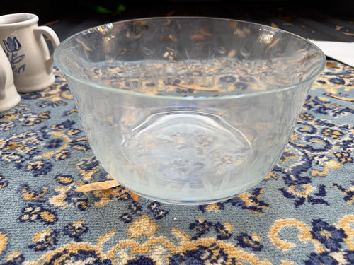 Vintage Etched Clear Glass Mixing or Serving Bowl – Floral & Leaf Pattern