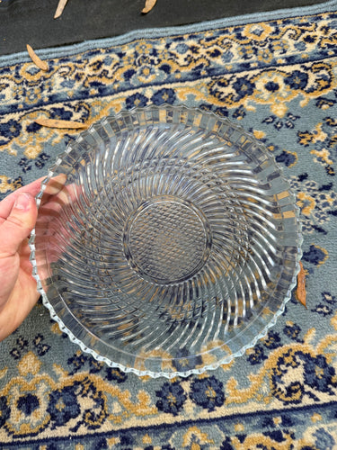 Vintage Pressed Glass plate – 10” Swirl Diamond Pattern Clear Serving Dish