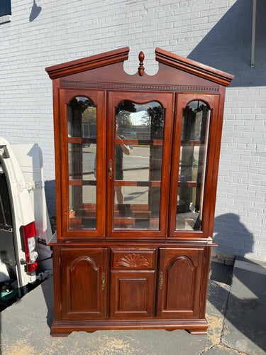Vintage Mahogany China Cabinet with Glass Doors & Shell Carving