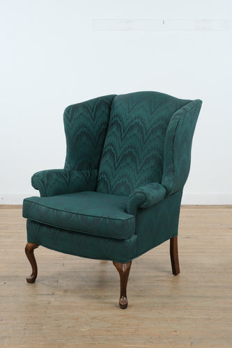 Elegant Emerald Wingback Armchair with Queen Anne Legs