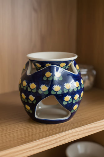 Manufaktura Polish Pottery Oil Burner / Wax Warmer β Hand-Painted Blue Floral Pattern, BolesΕawiec Poland