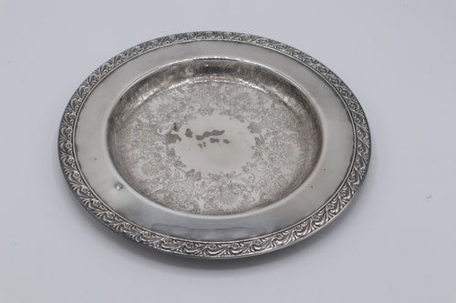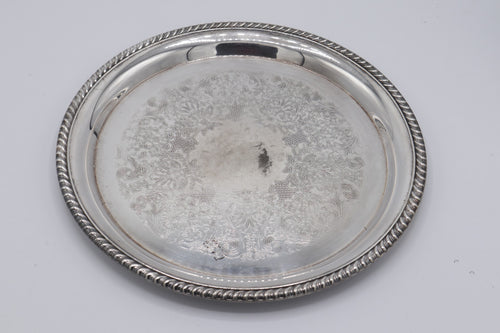 Wm Rogers Silver Plate Round Platter #171 – Etched Floral Design with Rope Edge