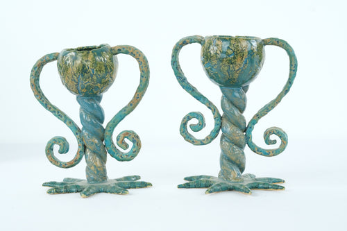 Vintage Ceramic Octopus-Style Candle Holders – Pair