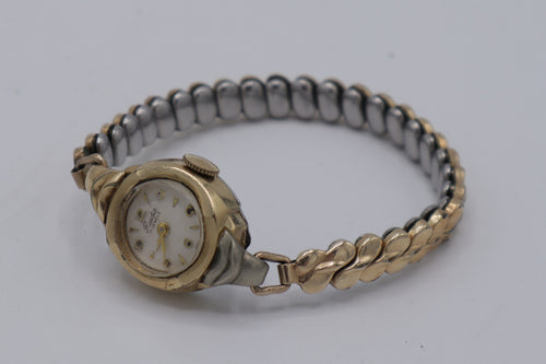 Vintage Ruda 17 Jewels Women’s Wristwatch – 10K R.G.P. Bezel, Stainless Steel Back, Two-Tone Stretch Band