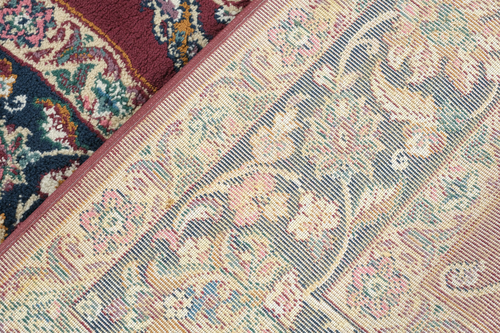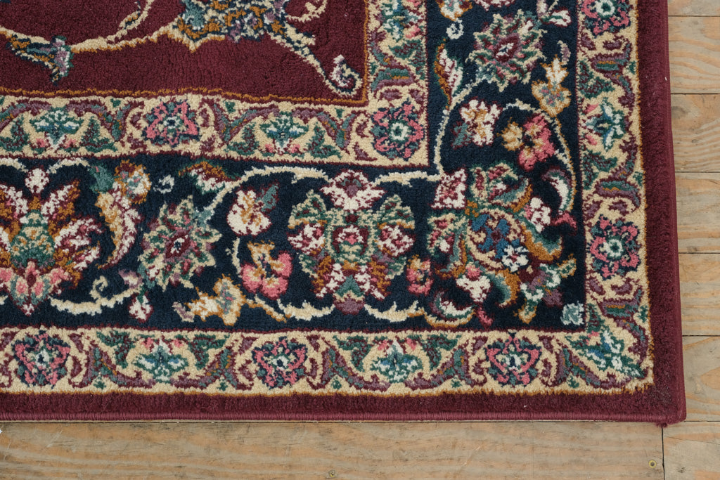 Bring timeless elegance into your space with this Imperial Heirloom area rug, featuring a rich wine-red field accented by deep navy borders and an intricate central medallion. Inspired by classic Persian-style motifs, this rug adds warmth, sophistication, and visual depth to living rooms, dining areas, or bedrooms.