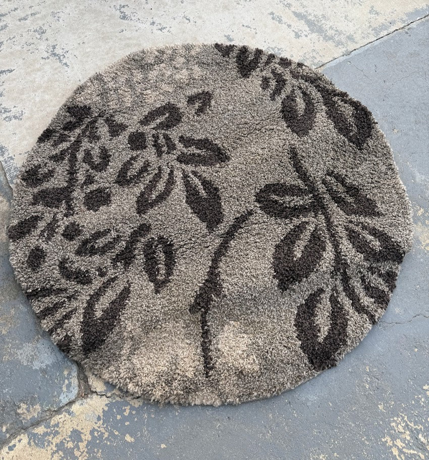 This Safavieh Florida Shag round area rug features a bold botanical leaf pattern in layered gray and dark brown tones, offering a warm, contemporary look with plush texture underfoot. The thick shag pile adds softness and visual depth, making it a great accent rug for bedrooms, living rooms, or seating areas. Made from durable polypropylene fibers, this rug was designed for everyday use but does show noticeable wear from prior use. It remains fully functional and decorative, ideal for budget-friendly décor, casual spaces, or layering.
