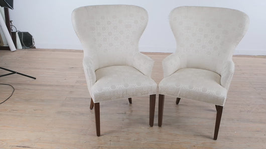 With their striking wingback form and soft neutral palette, these chairs work beautifully at the head of a dining table, in a formal sitting area, or as statement accent chairs. Their tailored lines and high-end craftsmanship make them ideal for transitional, modern classic, or designer-inspired interiors.