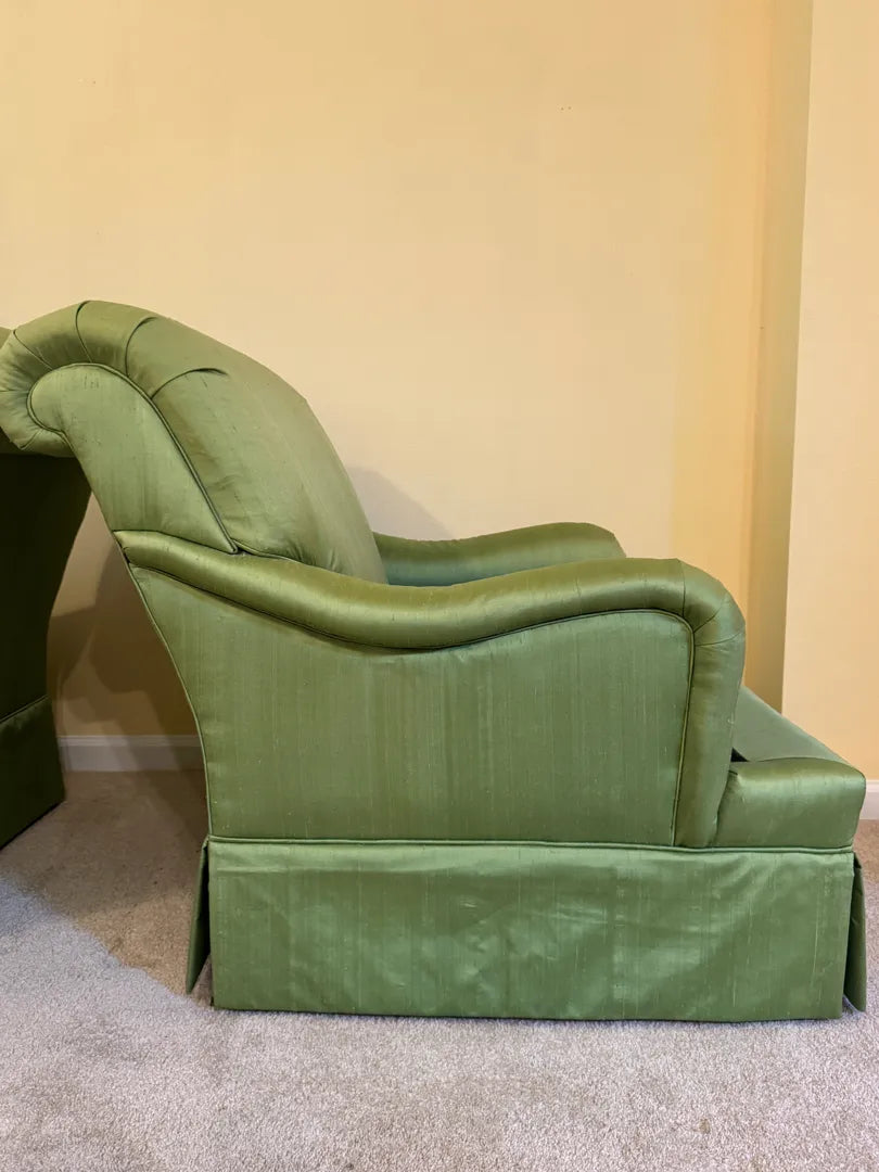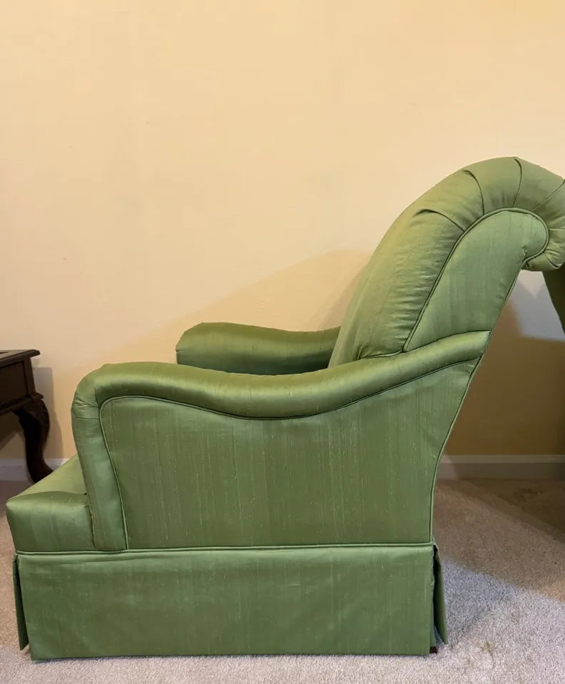 With their rich green upholstery and classic lounge-chair proportions, these chairs work beautifully in traditional, transitional, and curated eclectic interiors. Ideal for flanking a fireplace, creating a conversation area, or anchoring a reading nook, they bring both visual warmth and unmistakable quality to a space.