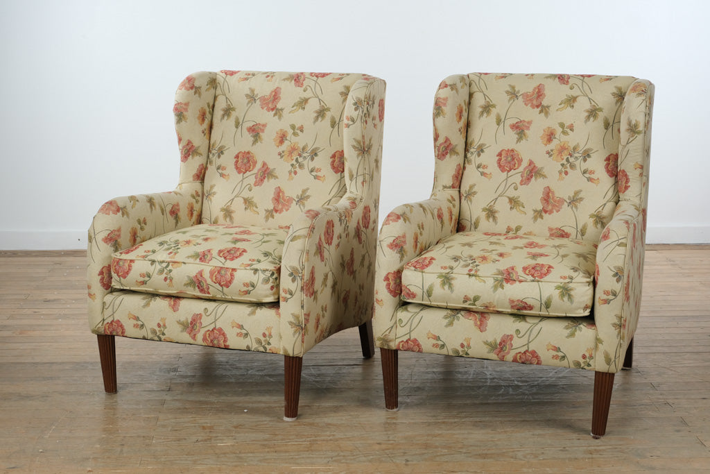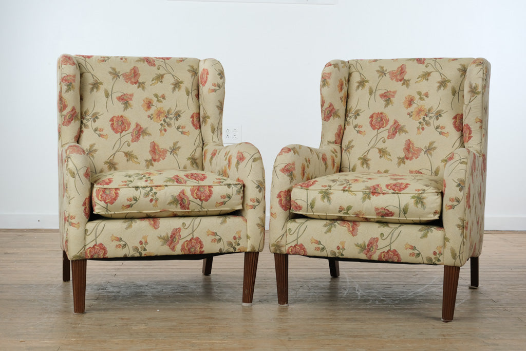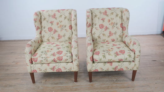 Perfectly suited for a sitting room, bedroom, or reading nook, these wingback chairs bring refined sophistication and warmth to any space. Their floral upholstery pairs beautifully with both neutral and colorful interiors, making them ideal accent pieces for traditional, cottage, or transitional designs.