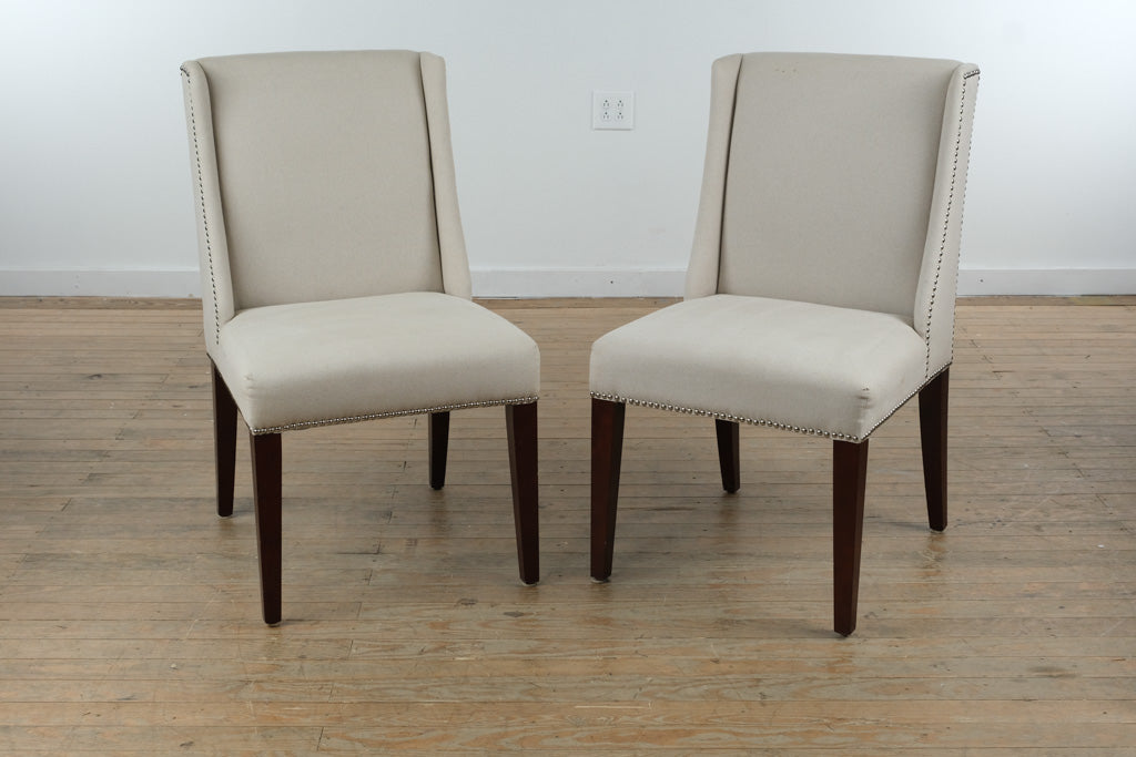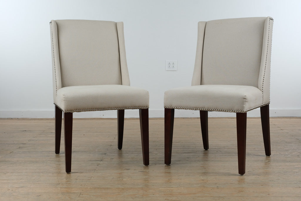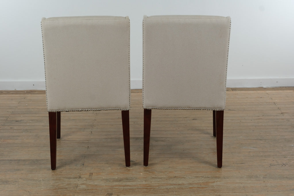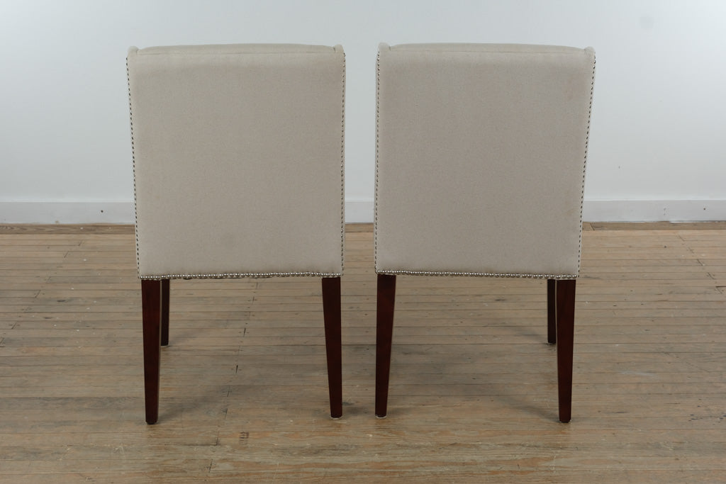 Ideal for a dining room, breakfast nook, or as accent seating, this pair works beautifully with wood, marble, or glass tables. The neutral upholstery allows for easy pairing with a wide range of palettes, while the nailhead detailing adds just enough visual interest to elevate everyday spaces.