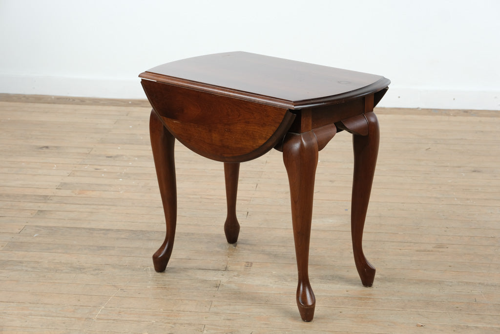 Timeless craftsmanship and warm cherry tones define this solid cherry drop-leaf side table, a versatile piece that blends traditional design with enduring quality. Its compact form and graceful lines make it ideal for use as an accent table, end table, or occasional piece in both classic and transitional interiors.