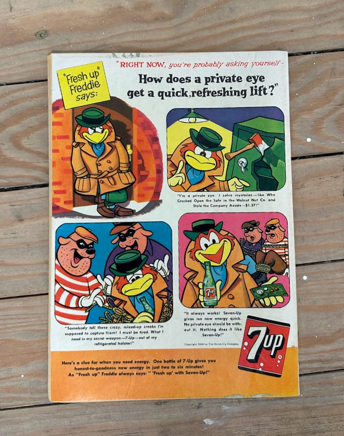 Includes period-correct advertisements on back covers (7-Up, Mickey the Juggler comic panel)