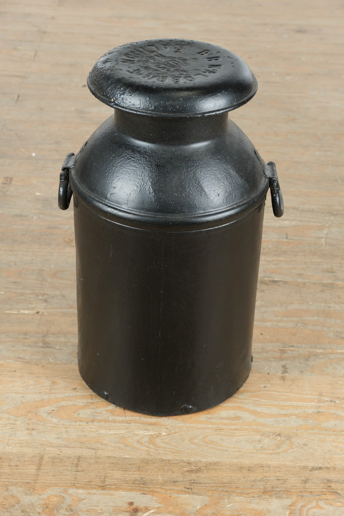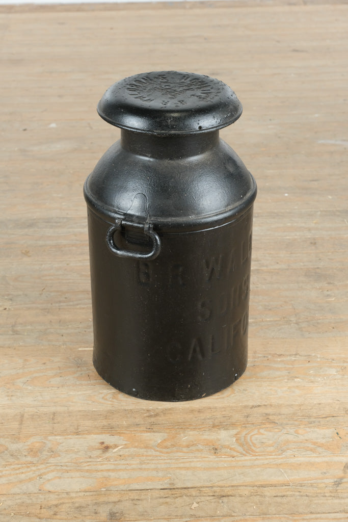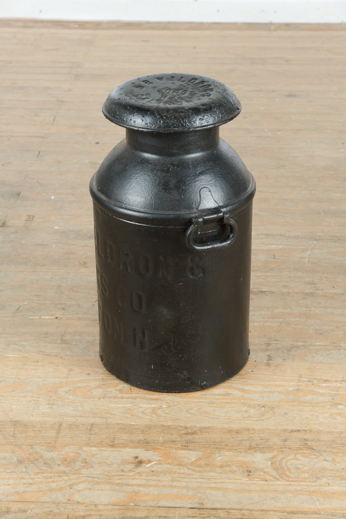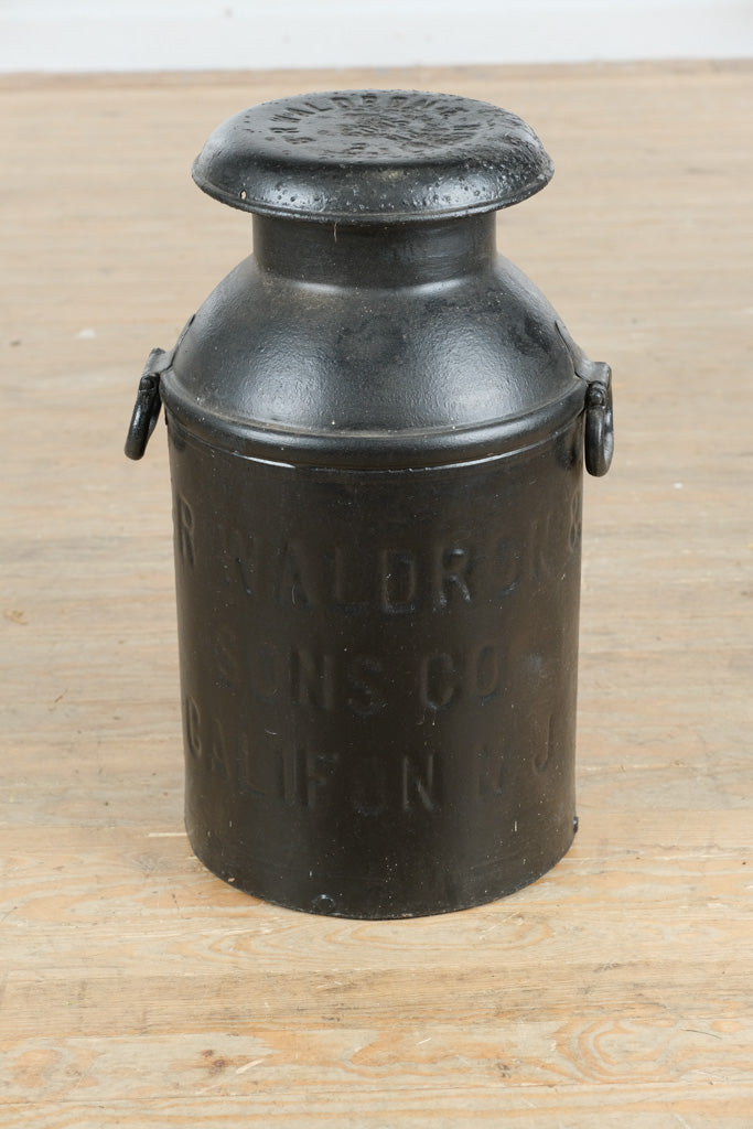 This striking antique BR Waldron & Sons milk can from Califon, New Jersey embodies early 20th-century American craftsmanship and rural charm. Constructed from heavy-gauge metal and finished in a deep black patina, this 25-inch-tall can once played a vital role in the daily rhythm of farm life. The embossed lettering adds authentic vintage character, making it an ideal statement piece for farmhouse interiors, rustic kitchens, or garden decor.