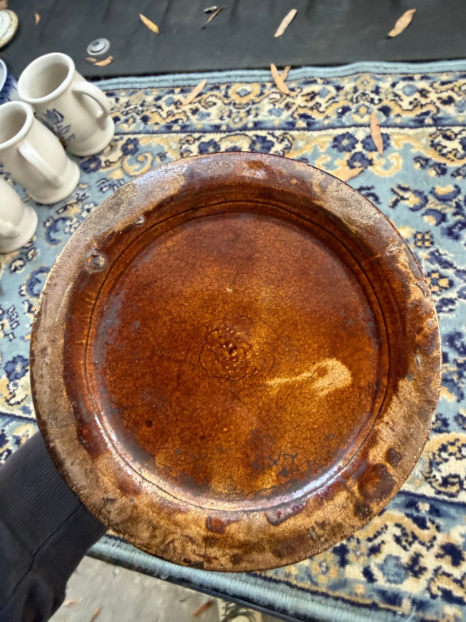 Condition: Good — small chips and glaze wear near rim and base consistent with age; light surface crazing visible. No major cracks. Displays beautifully with authentic antique patina.
